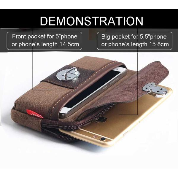 Male wear belt multi-function horizontal canvas Mobile phone bag Images |